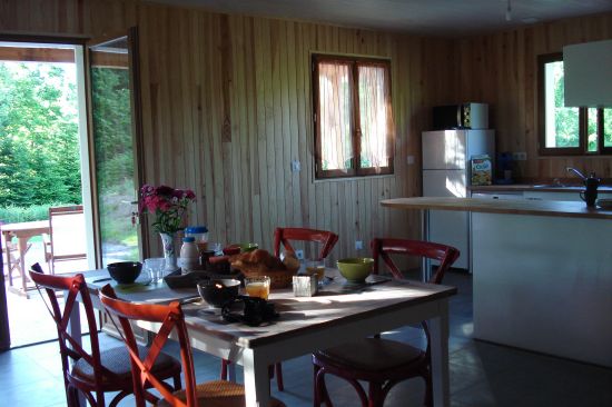 Les équipements du gîte : cuisine équipée, four électrique, plaque cuisson mixte, hotte, réfrigérateur avec compartiment congélateur, micro onde, lave vaisselle, lave linge. TV. Chauffage électrique.